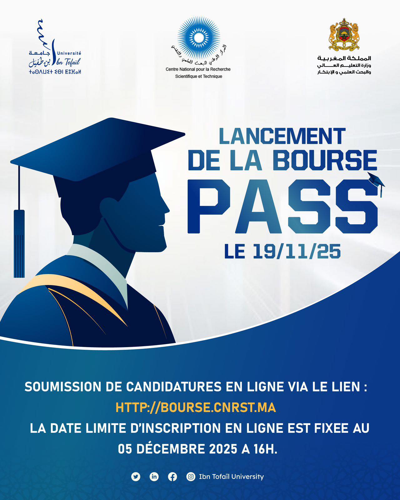 Ibn Tofail University encourages all its eligible first-year doctoral students to complete their applications exclusively through the official electronic portal at http://bourse.cnrst.ma. The deadline for registration is strictly set for December 5, 2025. This represents a premier opportunity for scholars to fund their research while actively building the future of Moroccan science.